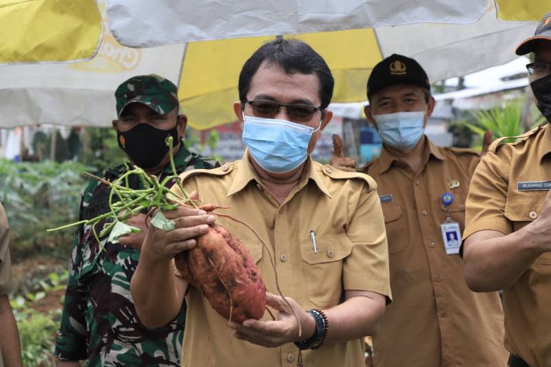 Bersama warga, DKP Kota Tangerang tidak hanya melakukan penanaman. Tetapi juga melakukan panen bersama yang merupakan hasil dari program penguatan ketahanan pangan di tengah pandemi yang dimulai sejak tahun 2020.