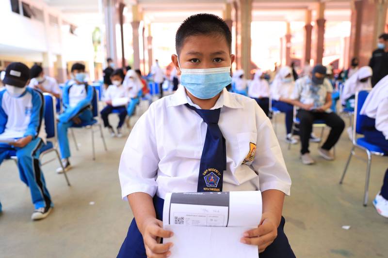 “Aku, sudah melewati kelas 6 SD dengan sistem online. Sekarang sudah SMP mau segera ketemu teman-teman baru. Jadi ayo dong, pelajar Kota Tangerang jangan takut vaksin, biar kita bisa cepat sekolah, bisa cepat saling kenalan,” katanya.