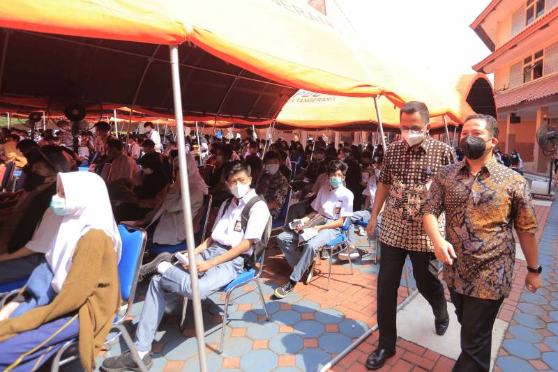 "Saya harap nanti para pelajar juga bisa mengajak orang tuanya untuk melakukan vaksinasi, karena untuk melaksanakan PTM tidak hanya pelajarnya saja yang harus divaksin tapi guru, petugas sekolah dan orang tua juga harus sudah divaksin," tukas Wali Kota Tangerang