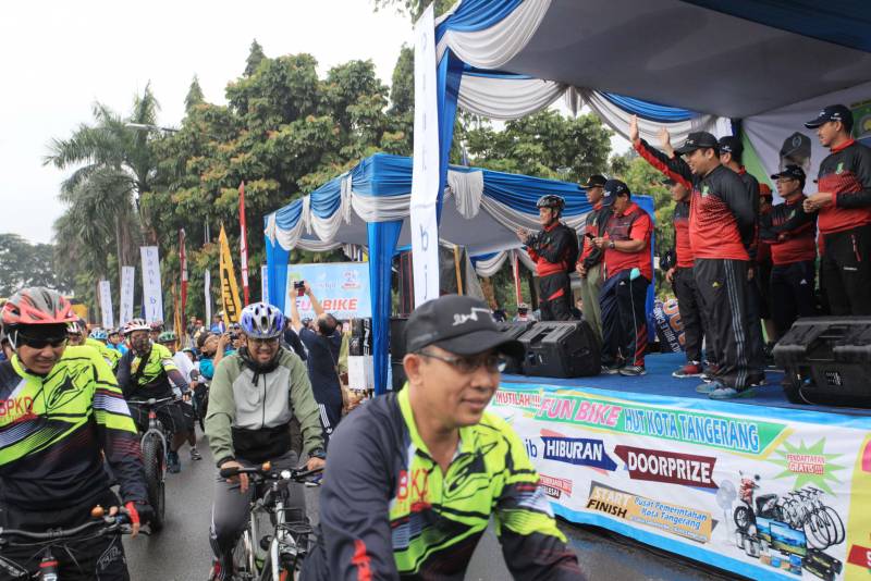 Hujan rintik yang mengguyur Kota Tangerang sejak subuh tak menyurutkan niat ribuan warga Kota Tangerang dan sekitarnya untuk berpartisipasi dalam Sepeda Santai yang menjadi rangkaian perayaan HUT Kota Tangerang ke-24. Tepat Pukul 06:00 WIB, para peserta Sepeda Santai sudah tampak mulai memadati Pusat Pemerintahan Kota Tangerang yang menjadi lokasi start dan finish event tersebut.