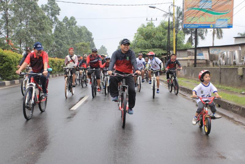 “Ayo genjot terus,” ujar Wali Kota menyemangati Azka yang begitu serius mengayuh sepedanya.