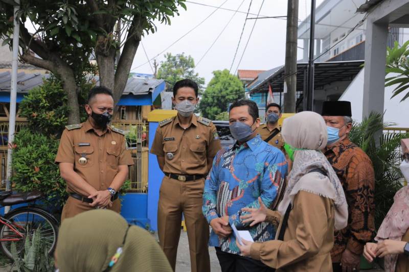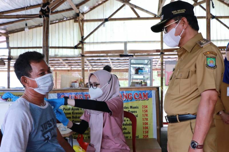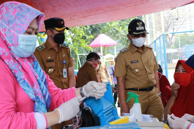 Wali Kota Tangerang H. Arief R. Wismansyah meninjau langsung pelaksanaan gebyar vaksinasi di Kota Tangerang yang salah satunya dilaksanakan di Balai Warga Komplek Pengayoman RW. 12 Kelurahan Sukasari Kecamatan Tangerang, Senin (6/9/21)