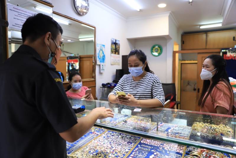 “Pada sistem ini, pedagang bisa membayar menggunakan m-banking dari seluruh bank, juga bisa menggunakan OVO, Gopay, Dana atau lainnya. Tanpa potongan biaya transaksi, sesuai aturan pertokoan emas retribusinya Rp10 ribu sedangkan lainnya hanya Rp6 ribu. Dikelola untuk biaya kemananan, kebersihan dan ketertiban,” papar Titien.