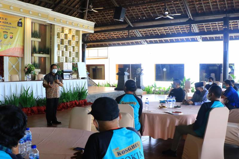 Wali Kota Tangerang H. Arief R. Wismansyah hadir sekaligus membuka acara Kongres Ke XI Pemilihan Ketua Kelompok Kerja (Pokja) Wartawan Harian Tangerang Raya (WHTR) Periode 2021 - 2024 yang bertema "Membangun Kebersamaan Pokja WHTR" yang diselenggarakan di Rumah Makan Istana Nelayan, Kebon nanas Kota Tangerang, Sabtu (25/9/21).