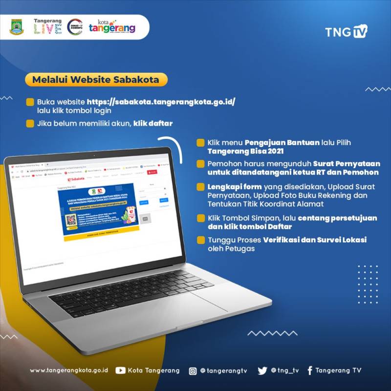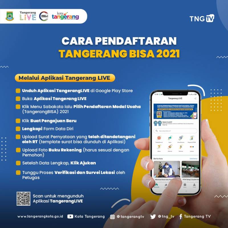 Untuk kalian para pelaku usaha pemula, ayo segera daftarkan Program Tangerang BISA 2021 untuk mendapatkan bantuan usaha sebesar 760 ribu rupiah melalui website sabakota.tangerangkota.go.id maupun Aplikasi TangerangLIVE.