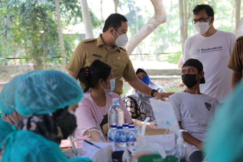 Pemerintah Kota Tangerang melalui Dinas Kesehatan dan Dinas Lingkungan Hidup Kota Tangerang menggelar vaksinasi bagi komunitas pemulung dan pelapak, acara tersebut didukung juga oleh Danone Indonesia yang ikut berpartisipasi memberikan sembako kepada para pemulung yang mengikuti vaksinasi, acara digelar di lokasi Tempat Pembuangan Akhir (TPA) Rawa Kucing Kota Tangerang, Selasa (28/9/21).