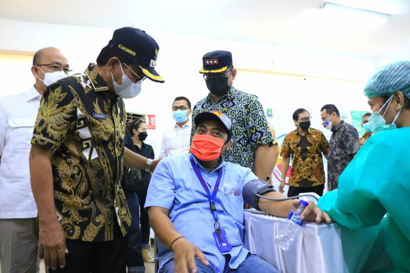 Wakil Wali Kota Tangerang H. Sachrudin didampingi Kepala Dinas Ketenagakerjaan Kota Tangerang Rakhmansyah hadir pada acara vaksinasi bagi karyawan PT. Panarub serta masyarakat umum yang diselenggarakan oleh BPJAMSOSTEK atau BPJS Ketenagakerjaan Provinsi Banten dengan didukung oleh Pemerintah Kota Tangerang bertempat di PT. Panarub Industri, Kamis (30/9/21).