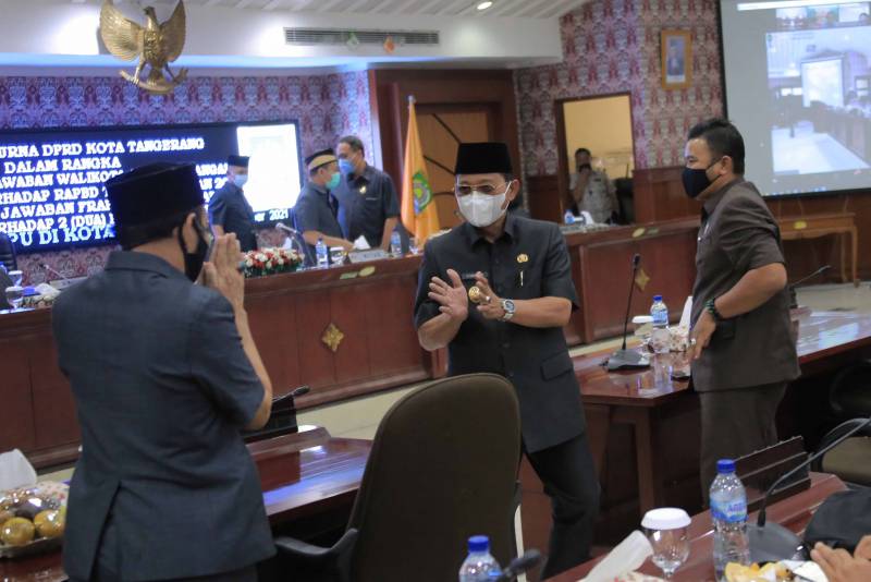 Wakil Wali Kota Tangerang H. Sachrudin menghadiri Rapat Paripurna DPRD Kota Tangerang dengan agenda Penyampaian Jawaban Wali Kota Tangerang mengenai Rancangan Peraturan Daerah (Raperda) APBD Tahun Anggaran 2022, Kamis (7/10/21).