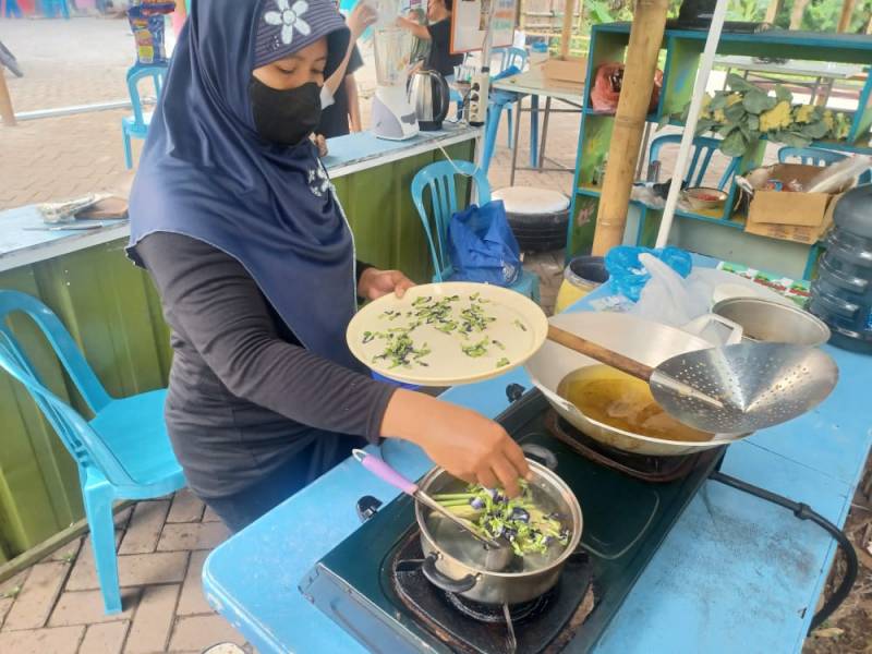 Bunga telang sering dijumpai pada lingkungan yang biasa dianggap remeh oleh sebagian masyarakat. Namun, ditangan-tangan produktif anggota KWT Germas Implan (Gemar menanam sayuran, inovasi menanam padi dan budaya ikan), Kelurahan Gandasari, Kecamatan Jatiuwung bunga telang sukses diolah menjadi minuman teh yang banyak akan manfaatnya.