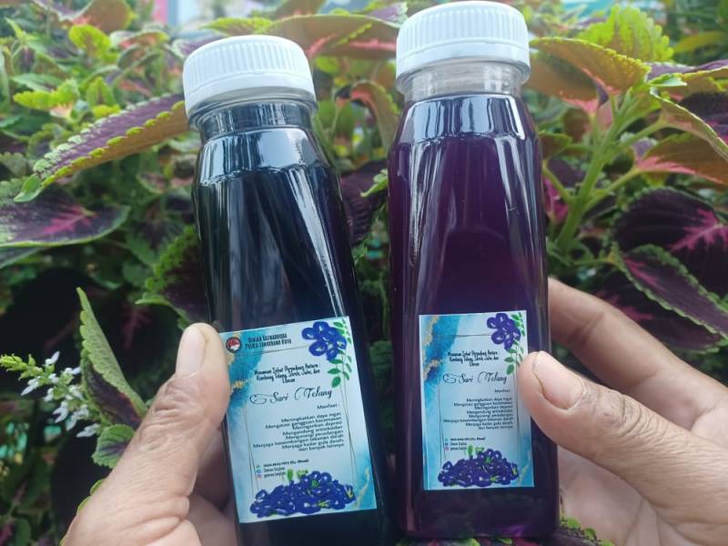 “Dari situlah akhirnya kita mulai belajar dan serius mengolah dan memproduksi teh bunga telang ini. Walau awalnya diproduksi hanya untuk para tamu kampung kami. Kini, bunga telang sudah kita produksi botolan untuk diperjual belikan lebih luas lagi,” ungkap Minah, Senin (25/10/21).
