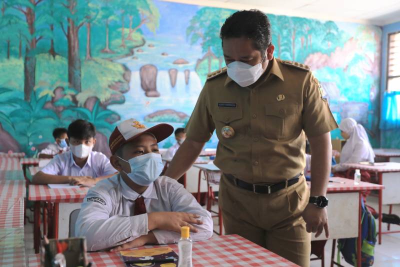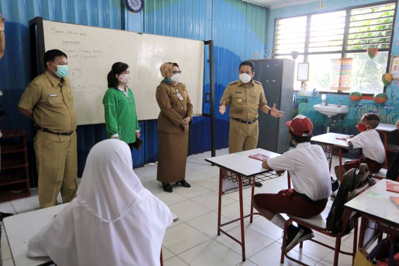 Wali Kota Tangerang H. Arief R. Wismansyah meninjau pelaksanaan PTM terbatas di tingkat SD yang pada tahap I ini dilakukan di 45 sekolah baik negeri maupun swasta di Kota Tangerang.