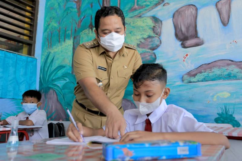 "Jadi kalau orangtuanya belum divaksin, anaknya belum bisa ikut PTM di sekolah tapi tetap bisa ikut pembelajaran via daring," tegas Wali Kota.