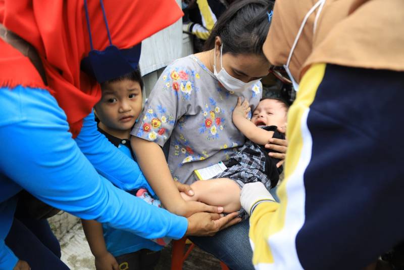 Kepala Puskesmas Pabuaran Tumpeng, drg. Sri Nurdjunaida menjelaskan bahwa selain vaksin yang dilakukan secaara door to door, ada juga imunisasi yang dilaksanakan secara bersamaan. Ini dilakukan karena banyak masyarakat yang masih takut membawa bayinya untuk mendapatkan imunisasi.