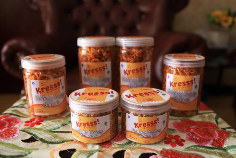 “Kresss Indonesia tak hanya kentang mustofa, tapi juga produksi keripik kentang, bawang goreng, hingga tempe kering yang diolah dengan bumbu karang tanah dan sedikit kentang kriuk. Semua dapat dinikmati dengan nasi panas atau sekadar teman camilan,” katanya.