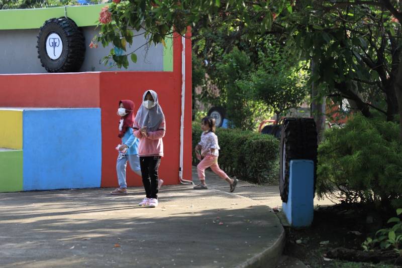 Pantauan lapangan, pengunjung yang silih berganti mulai meramaikan taman tidak direpotkan dengan aturan prokes. Orangtua hingga anak-anak telihat tetap dapat menikmati suasana taman, walau harus selalu menggunakan masker.
