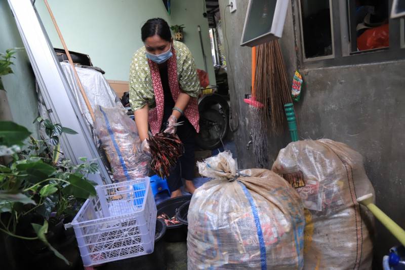“Awalnya, setiap setelah mengonsumsi sesuatu yang ada kemasan plastik saya kumpulkan dulu. Sekarang, saya nitip juga ke warung-warung untuk memisahkan kemasan sachet bekas minuman. Nanti, kalau sudah cukup banyak baru saya olah menjadi tas atau produk yang lain,” tuturnya.