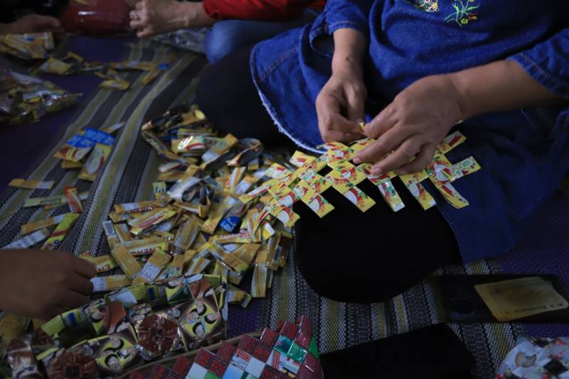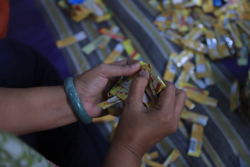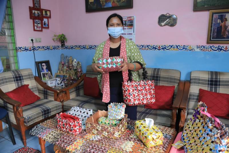 Sampah bagi sebagian orang tidak ada harganya, bahkan jarang untuk dilirik kembali. Tapi, di tangan Mikha Suparmin UMKM Matahari 2, limbah sampah plastik dapat menjadi kerajinan tangan, berupa tas, tikar, dan produk-produk lainnya yang dapat digunakan kembali.