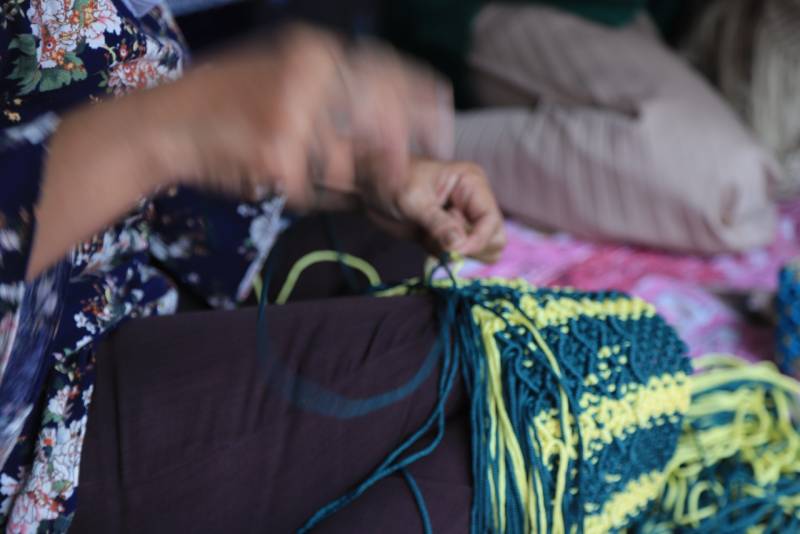 “Awalnya hanya coba-coba aja ya sambil mengisi waktu luang, dan untuk menambah pendapatan aja dari usaha ini. Akhirnya, saya mengikuti kursus untuk merajut dari tali kur ini. Setelah dua hari kursus, alhamdulillah saya sudah bisa mengikuti. Setelah itu, saya ikuti proses pendalaman untuk pembuatan motif,” ungkapnya.
