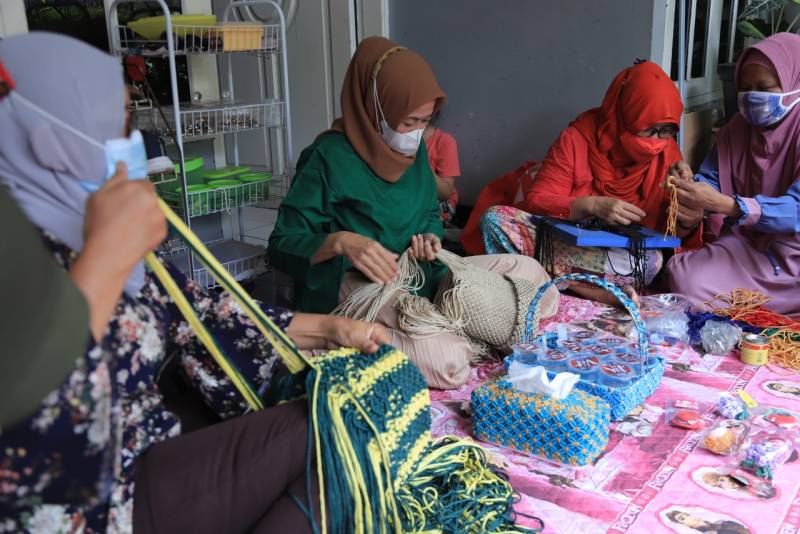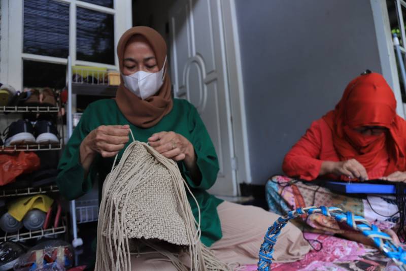 Selain tas, ia juga dapat membuat sandal, tempat tisu, gantungan kunci, hingga pengait masker. Meski berjualan hanya dari mulut ke mulut, penjualan tas rajut yang ia geluti sudah mendarat hingga Purwokerto, dan Surabaya.