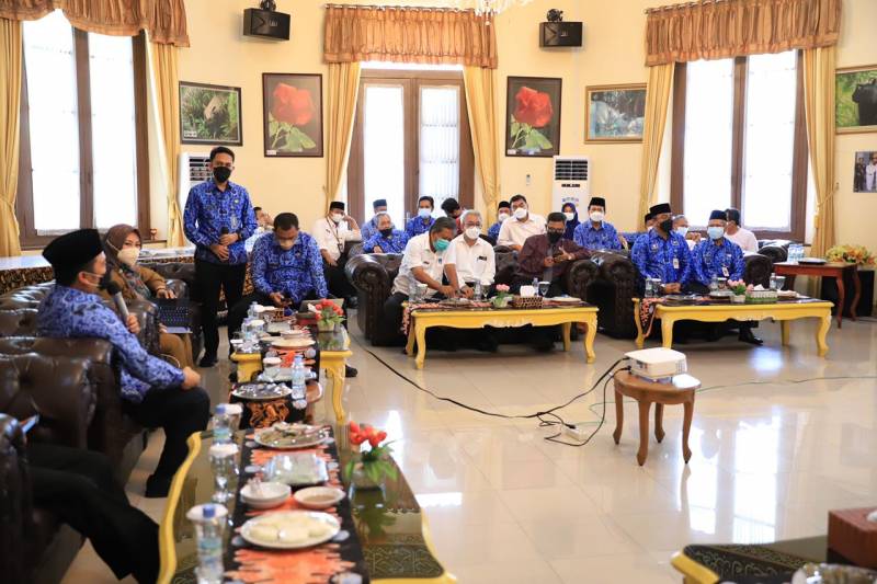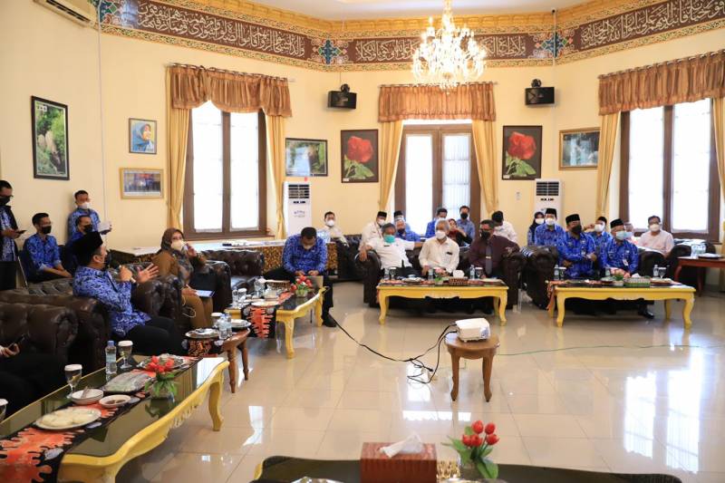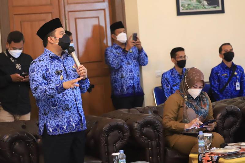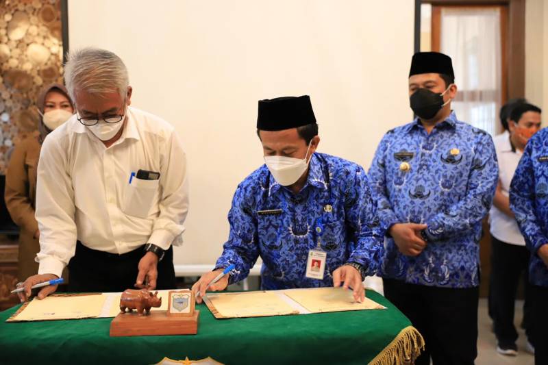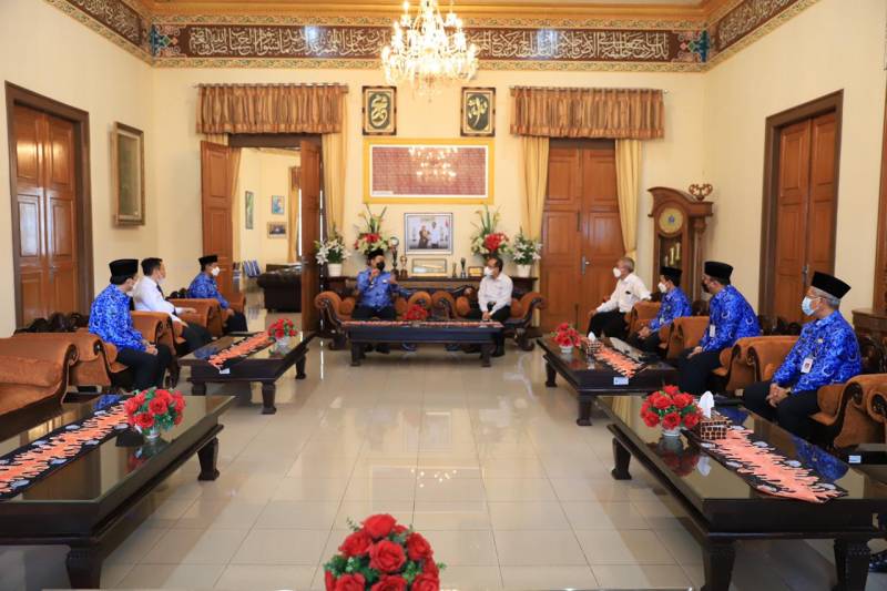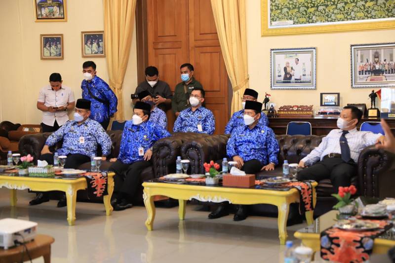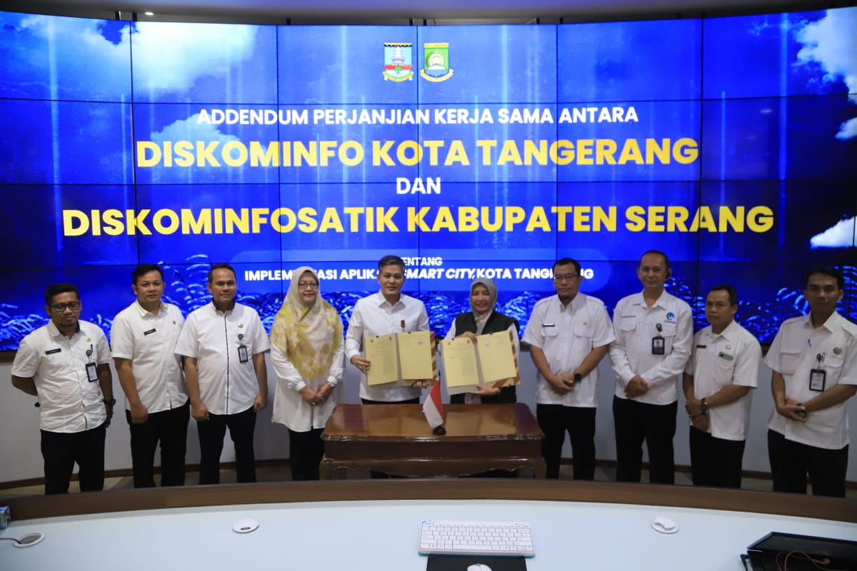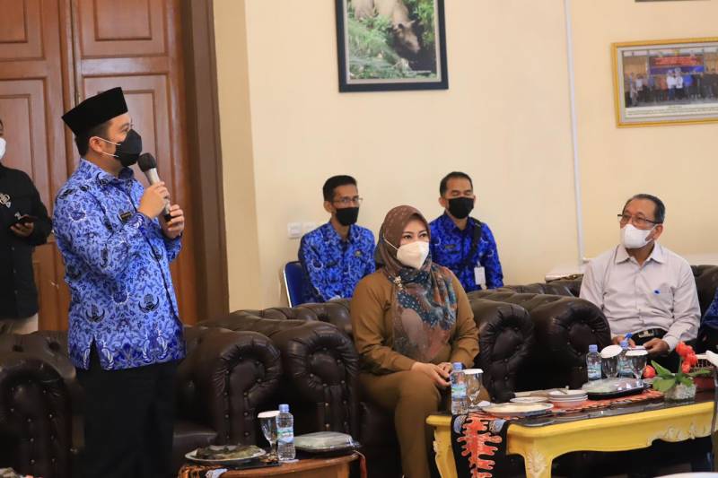 Pemerintah Kota Tangerang melakukan kunjungan balasan ke Pemerintah Kabupaten Pandeglang, di Pendopo Bupati Pandeglang, Rabu (10/11/21). Dalam kunjungan ini juga dilakukan penandatanganan kesepakatan bersama (MOU) terkait kerjasama pembangunan antar daerah.