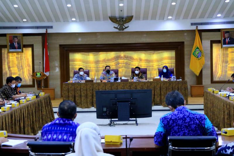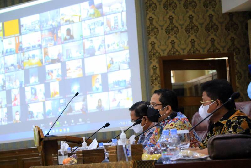 Wali Kota Tangerang H. Arief R. Wismansyah didampingi Wakilnya H. Sachrudin memimpin rapat evaluasi pembangunan yang diikuti secara langsung oleh seluruh Kepala OPD Pemerintah Kota Tangerang serta sejumlah pejabat esselon III secara daring.