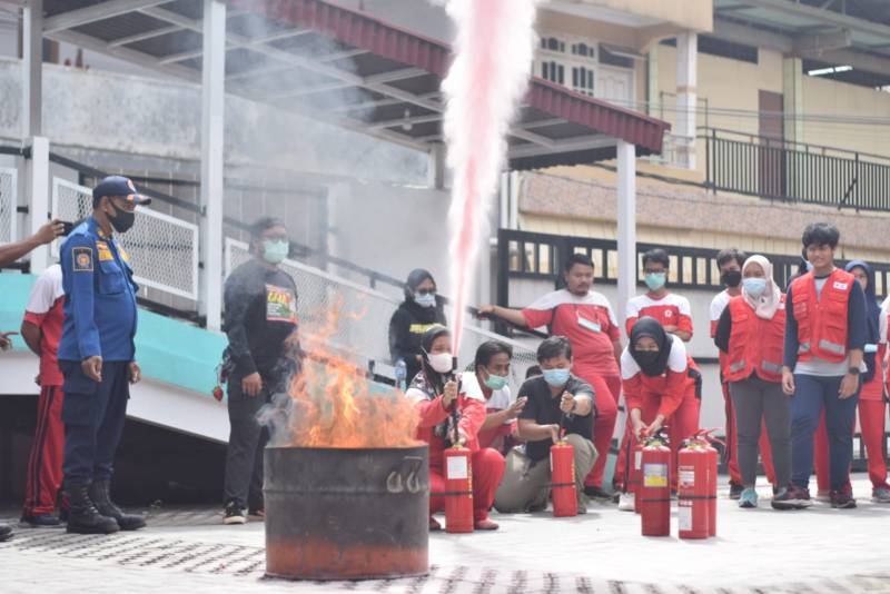 Palang Merah Indonesia (PMI) Kota Tangerang bekerjasama dengan Badan Penanggulangan Bencana Daerah (BPBD) Kota Kota Tangerang mengelar kegiatan Pelatihan dan Simulasi Kebakaran di Lingkungan Kerja, di Aula gedung laboratorium PMI Kota Tangerang, Jumat (12/11). Tujuan simulasi kebakaran ini untuk pemetaan risiko bencana lingkungan kerja PMI Kota Kota Tangerang.