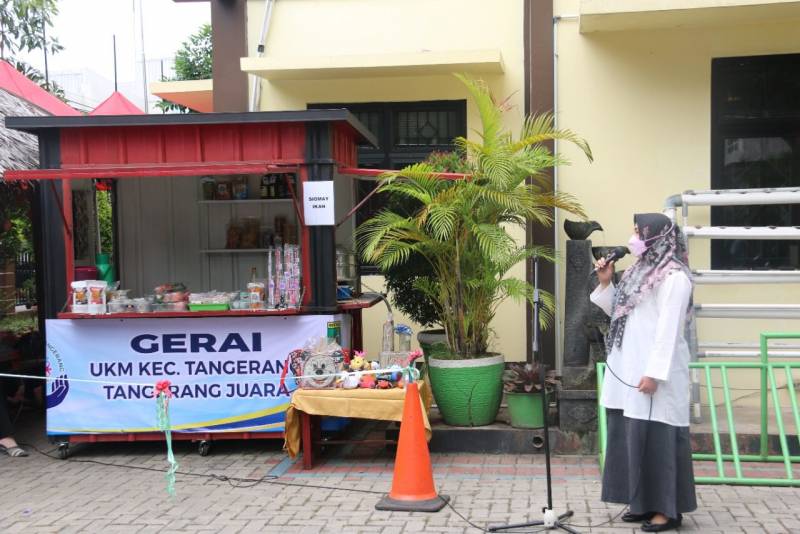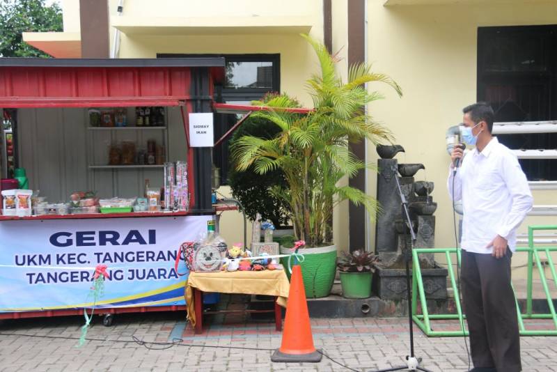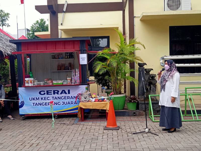 Memotivasi dan mendukung produk lokal atau UMKM. Kecamatan Tangerang meresmikan gerai UMKM yang dibangun di halaman kantor Kecamatan Tangerang, Jumat (12/11/21). Puluhan pelaku UMKM terbaik Kecamatan Tangerang dengan berbagai produknya, kini dapat dengan mudah dijumpai dan beli di Gerai UMKM Kecamatan Tangerang.