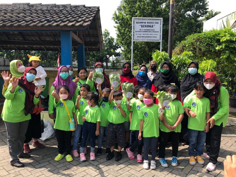 Seperti yang dilakukan puluhan anak TK Pertiwi, Kota Tangerang yang melakukan agroeduwisata ke lahan pertanian KWT Kenanga, RW 07, Kelurahan Bugel, Kecamatan Karawaci, Senin (15/11/21). Diketahui, ini menjadi kali pertama kunjungan dari anak-anak usia dini, yang biasanya KWT Kenanga manjadi wadah belajarnya kalangan mahasiswa atau universitas.