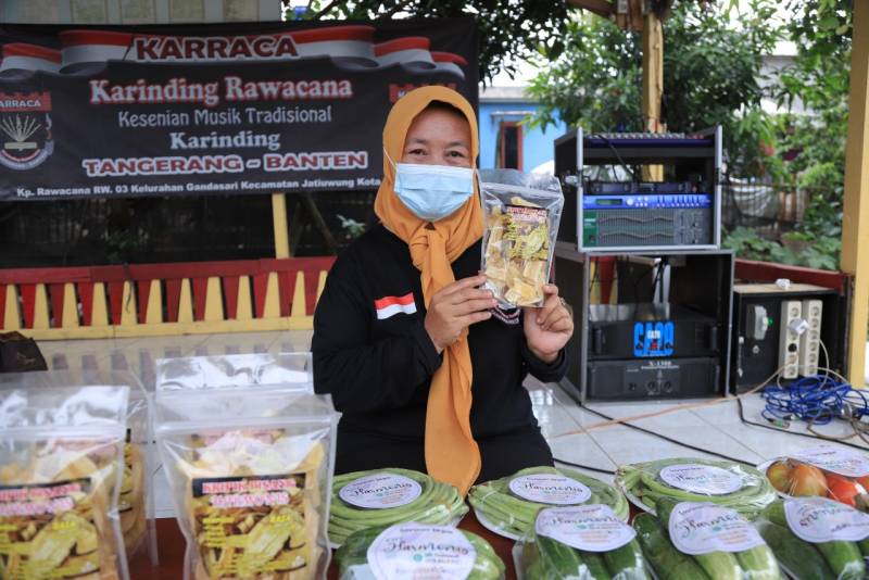 “Di sini kami jual juga produk-produk hasil panen dari KWT Harmonis. Seperti sayur-sayur dan buah-buahan. Selain itu, ada juga olahan-olahan yang kami buat seprti keripik pisang, keripik sukun, dan keripik pare. Semua bahan diambil dari hasil panen,” katanya.