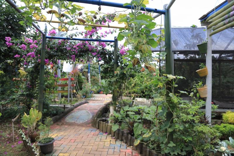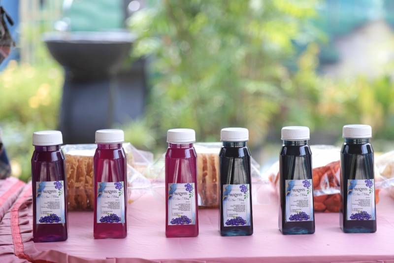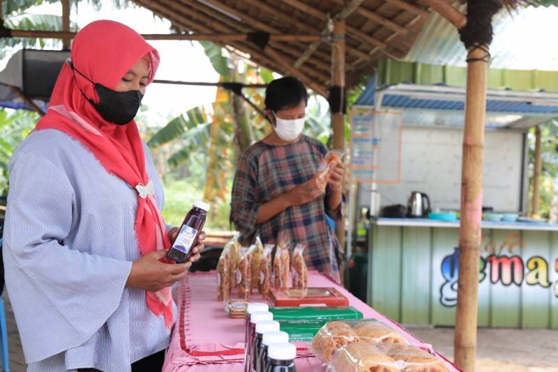 “Hasil panen di sini dijual untuk warga sekitar, juga untuk pedagang sayur juga. Selain itu, kami olah juga hasil panen sendiri jadi produk yang dijual oleh UMKM di sini. Ada kripik pisang, kripik pare, sirup markisa dan yang cukup ramai itu sari kembang teleng,” katanya.