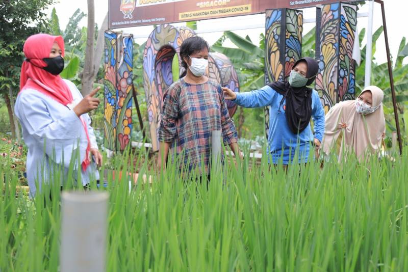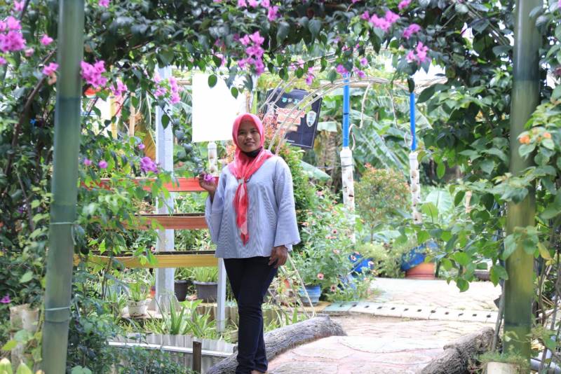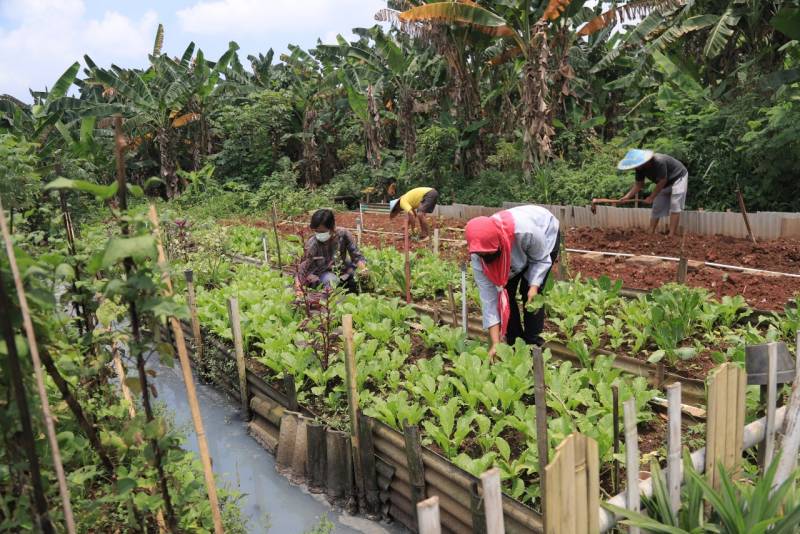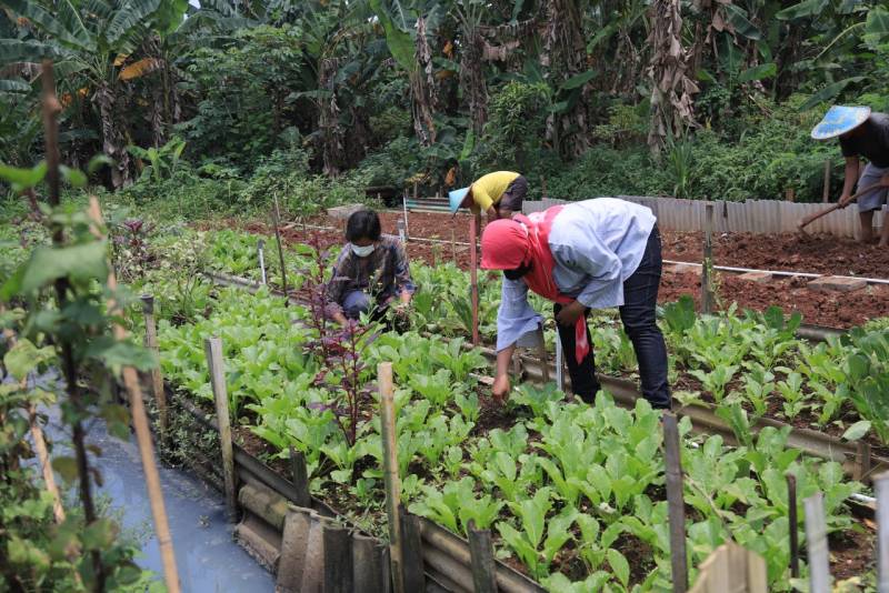 “Jadi, tadinya ini adalah lahan kosong. Akhirnya, oleh warga sekitar sini dimanfaatkan untuk jadi ladang menanam sayur dan buah-buahan. Diurus juga oleh ibu-ibu rumah tangga di sini alhamdulillah jadi ada kegiatan dan penghasilan tambahan,” ungkap Tuminah, Ketua KWT Gemas Implan.