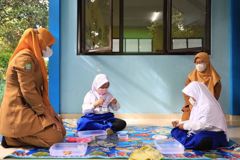 “Untuk sementara juga tempat bermain tidak kami buka. Jadi seluruh aktivitas hanya dilakukan di dalam kelas mulai dari pukul 7.30 hingga pukul 9.30. Orang tua murid juga diinformasikan untuk anaknya di rumah sarapan terlebih dahulu, karena hanya diperbolehkan membawa minum saja,” ungkap Holipah.