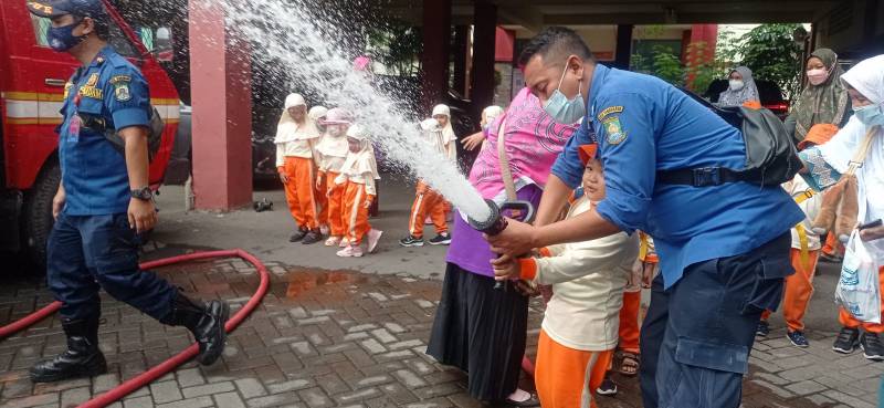 Dalam kunjungan ini, anak-anak diberikan pengetahuan terkait profesi pemadam kebakaran. Mulai dari pakaian yang dikenakan, kendaraan yang digunakan, hingga alat-alat yang digunakan saat proses pemadaman. Anak-anak pun diberikan kesempatan merasakan langsung sensasi penyemprotan air jika terjadi kebakaran.