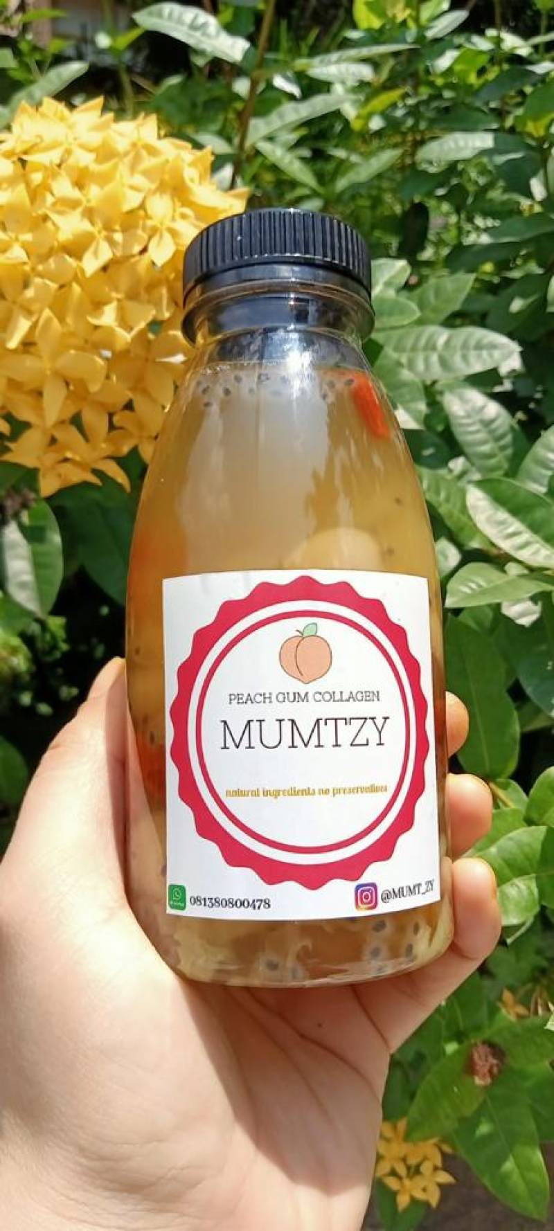 “Peach Gum Collagen Dessert saya jual Rp25 ribu per botolnya. Seminggu maksimal dua kali minum, menjaga kulit tetap sehat, berat badan terjaga, bagus untuk peredaran darah dan membersihkan paru,” kata Rossa.