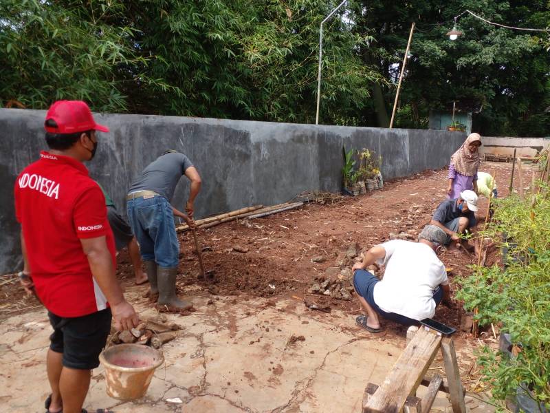 Kali ini, sejumlah warga RW 05 melakukan kerja bakti, mengubah lahan sederhana menjadi lahan produktif untuk bercocok tanaman hingga membangun kolam budidaya lele.