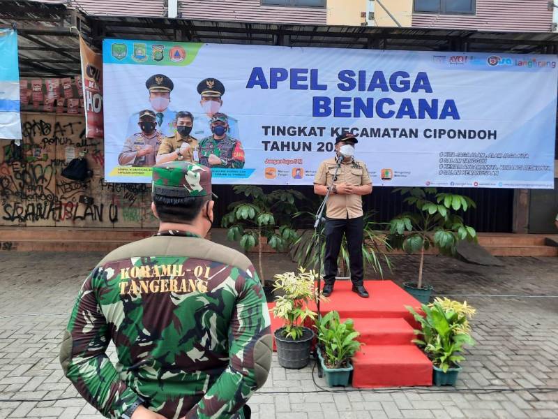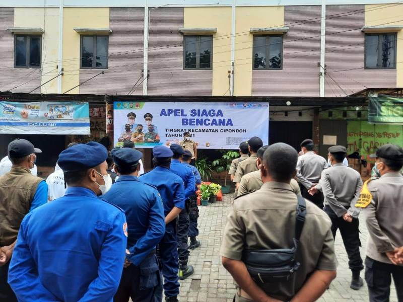 Personil gabungan dari berbagai unsur di Kecamatan Cipondoh, mengikuti apel gabungan kesiapsiagaan penanggulangan becana alam. Mulai dari jajaran kelurahan, polsek, koramil, BPBD, PUPR, Puskesmas, DLH, RT, RW, Pokdar, Bakorkonwil hingga satgas kebersihan, yang berlangsung di Parkiran Pasar Rubuh, Kelurahan Petir, Kecamatan Cipondoh, Rabu (1/12/12).