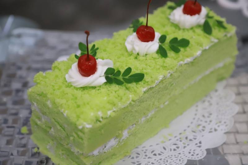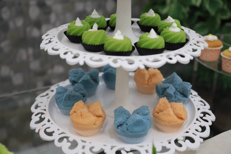 “Dan untuk warna warni kue ini, didapat dari sayuran ataupun bunga. Kalo oren dari wortel, biru tosca dari kembang teleng dan kalo hijau dari daun katuk,” lanjutnya.