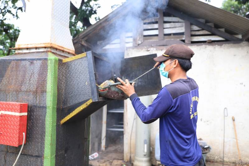 “Jadi prosesnya, sampah-sampah warga kami kumpulkan, lalu kami pilah mana yang organik dan non-organik. Sampah organik kami cacah lalu diolah oleh maggot. Kemudian, sampah plastik kami olah menjadi bio solar dengan menggunakan alat pyrolysis,” jelasnya.