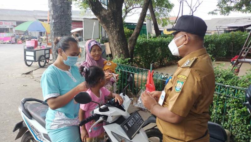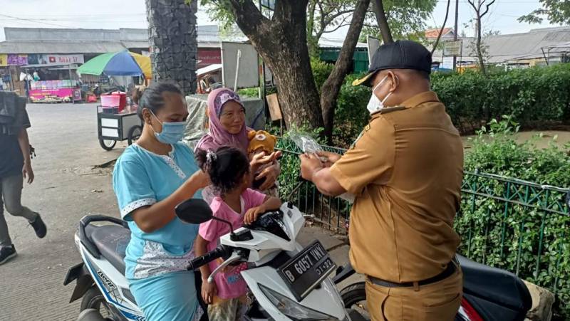 Pegawai Kecamatan Pinang, turun ke jalan membagikan masker gratis untuk para masyarakat, tak terkecuali para pengendara. Tak sedikit, pegawai mengingatkan warga untuk tidak lelah, lengah dan abai akan virus covid-19 yang masih ada.