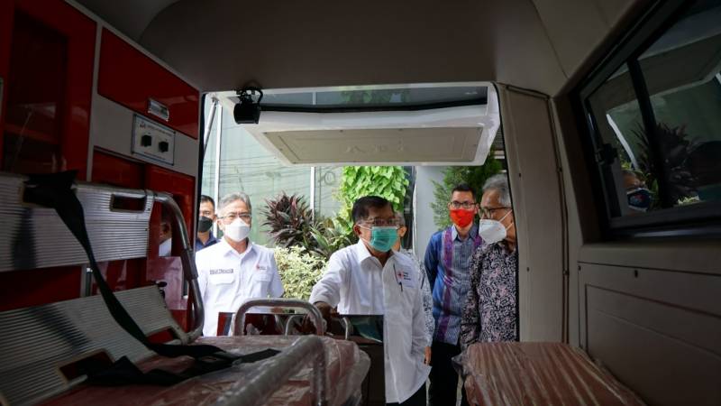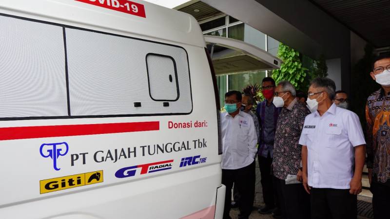 Palang Merah Indonesia hari ini, Selasa 14 Desember 2021, menerima bantuan 2 Unit ambulan Covid-19 yang diterima langsung oleh Ketua Umum PMI, Jusuf Kalla di Markas Pusat PMI. Bantuan ambulan ini diserahkan langsung oleh Presiden Direktur Gajah Tunggal, Sugeng Raharjo.