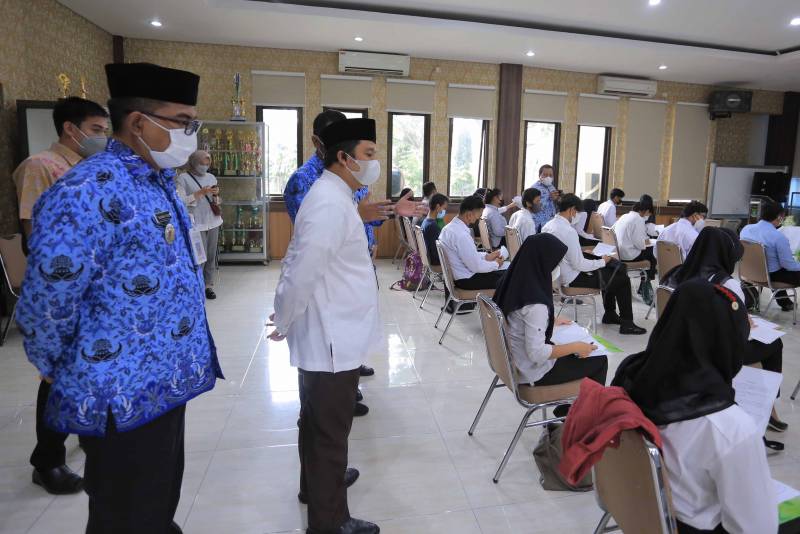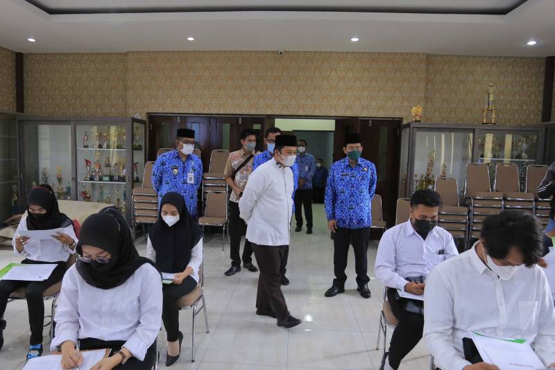 Wali Kota Tangerang H. Arief R. Wismansyah tinjau para pencari kerja yang sedang mengikuti psikotes pada salah satu perusahaan swasta melalui kegiatan Job Fair tingkat Kelurahan di wilayah Karawaci, psikotes ini diselenggarakan di Aula Kantor Kecamatan Karawaci, Jum'at (17/12/21).
