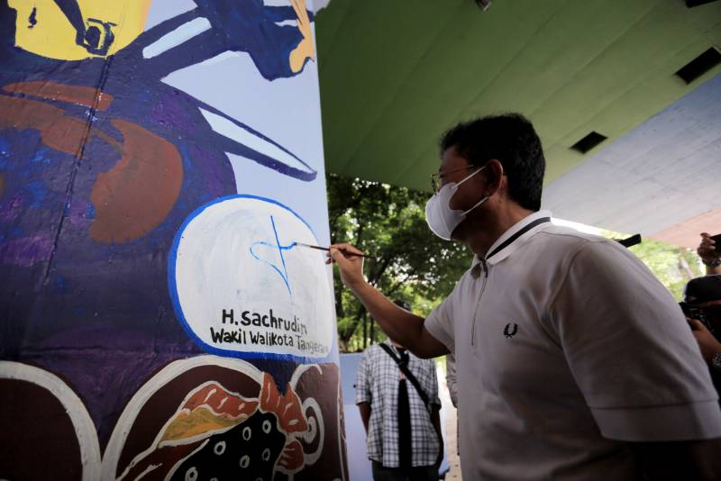 Wakil Wali Kota Tangerang H. Sachrudin secara langsung membuka kegiatan lomba mural yang menjadi rangkaian dari peringatan Hari Sumpah Pemuda ke-93 tahun 2021 di Kota Tangerang.