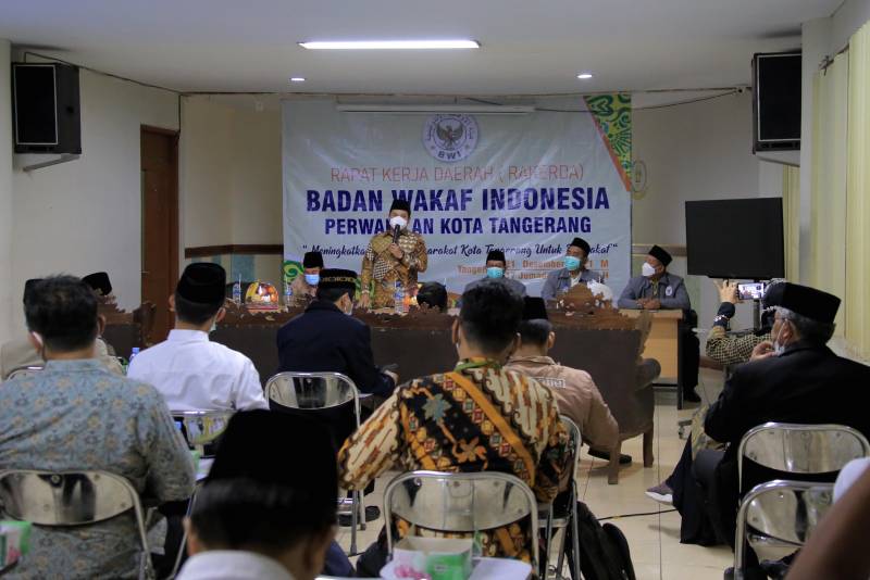 Wali Kota Tangerang H. Arief R. Wismansyah hadir dalam acara Rapat Kerja Daerah (Rakerda) Badan Wakaf Indonesia (BWI) Perwakilan Kota Tangerang dengan mengusung tema "Meningkatkan Animo Masyarakat Kota Tangerang Untuk Berwakaf" di Gedung MUI Kota Tangerang, Selasa (21/12/21).