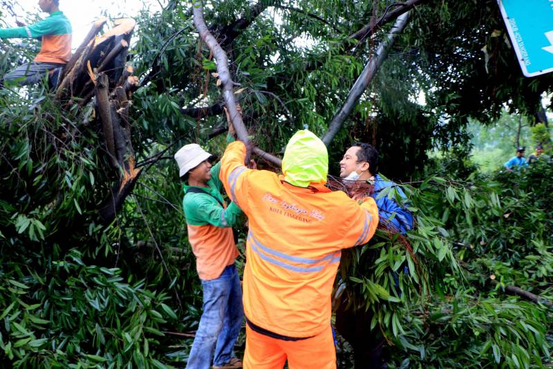 Wali Kota Tangerang H. Arief R. Wismansyah meninjau langsung titik - titik lokasi pohon tumbang akibat hujan yang terjadi.