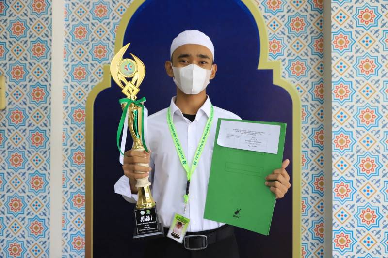 Juara Satu Pidato Bahasa Indonesia tingkat lokal, Fikri Fadhillah membawakan pidato tentang mantan Presiden Republik Indonesia, KH. Abdurrahman Wahid atau yang dikenal sebagai Gus Dur.