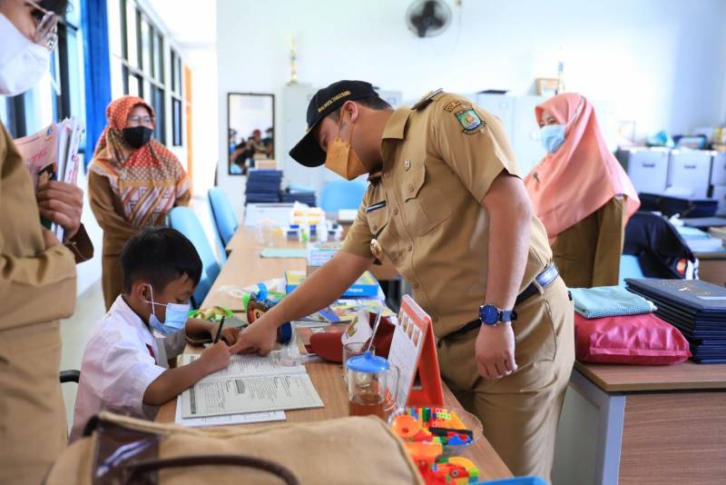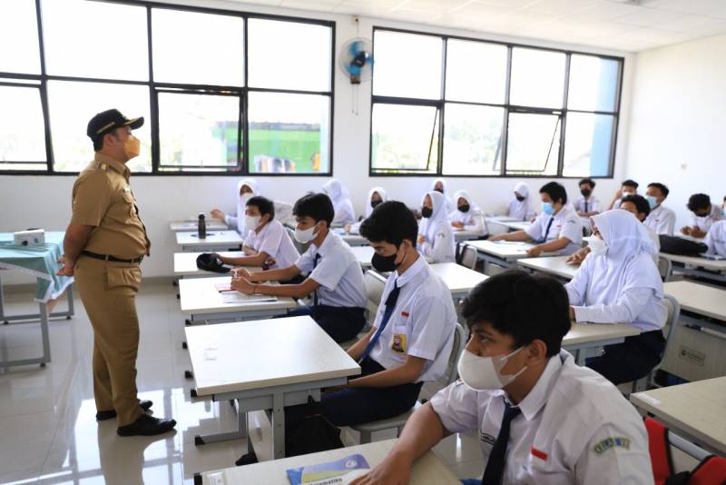 Setelah dimulai sejak September 2021 lalu. Kini, berasarkan intruksi dari SKB 4 Menteri, Pemerintah Kota Tangerang melalui Dinas Pendidikan menyelenggarakan kapasitas ruang kelas Pembelajaran Tatap Muka (PTM) Terbatas mulai dari tingkat PAUD, TK, SD hingga SMP sudah 100 persen, Senin (3/1/21).