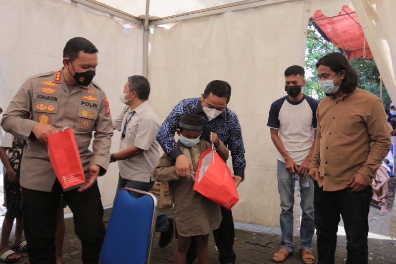 Wali Kota Tangerang H. Arief R. Wismansyah bersama Kapolres Metro Tangerang Kota Kombes Pol Komarudin sambangi Sekertariat Kelompok Kerja (Pokja) Wartawan Harian Tangerang Raya (WHTR) yang sedang menggelar kegiatan bakti sosial dalam rangka memperingati HUT Pokja WHTR yang ke 22 Tahun yang berlokasi di Jalan Perintis Kemerdekaan, Kamis (27/1/22).
