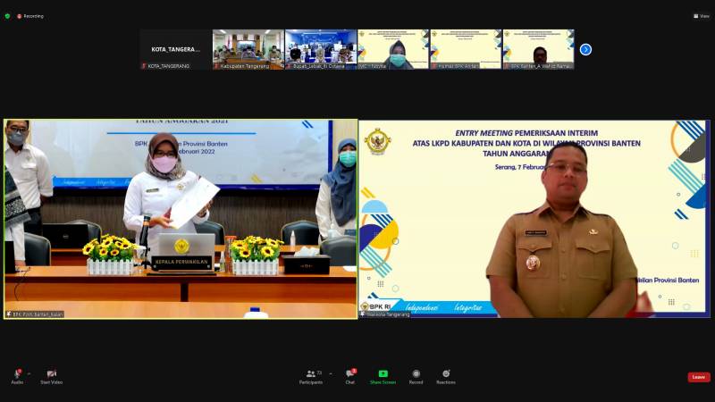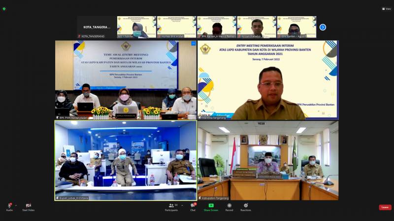 Wali Kota Tangerang H. Arief R. Wismansyah menghadiri kegiatan Temu Awal (Entry Meeting) Pemeriksaan Interim Atas LKPD Kabupaten dan Kota di Wilayah Provinsi Banten Tahun Anggaran 2021 secara daring yang diinisiasi oleh Badan Pemeriksa Keuangan (BPK) Perwakilan Provinsi Banten.