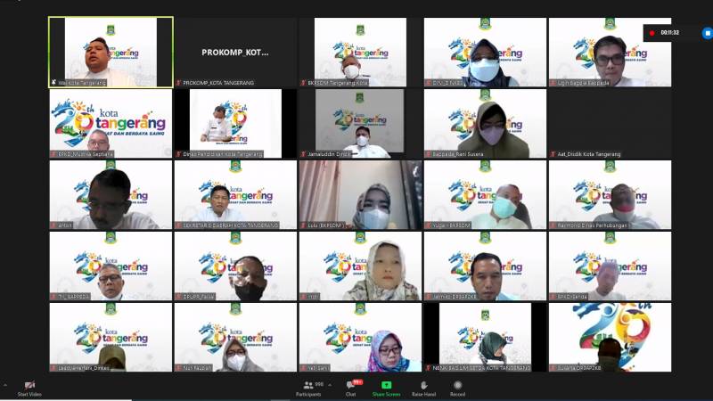 Wali Kota Tangerang H. Arief R. Wismansyah bersama Wakilnya H. Sachrudin dan Sekretaris Derah Kota Tangerang memimpin rapat evaluasi OPD yang diikuti secara virtual oleh seluruh Kepala OPD Pemerintah Kota Tangerang serta sejumlah pejabat esselon III dan IV, Jumat (11/2/22)