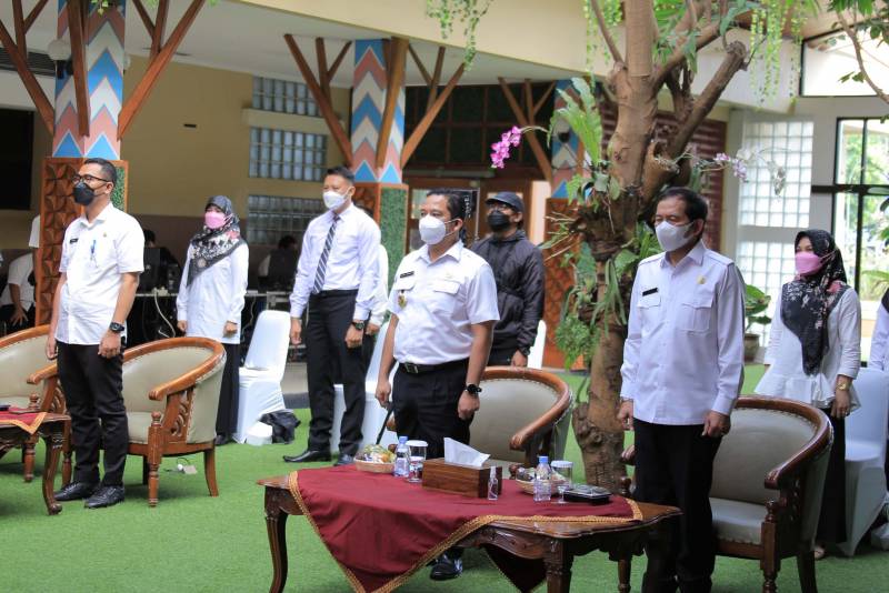 Wali Kota Tangerang Arief R. Wismansyah hadir bersama Plt. Kepala Dinas Ketenagakerjaan Rakhmansyah melaunching sekaligus membuka acara Virtual Job Fair edisi HUT Kota Tangerang yang berlangsung secara daring dan luring di Gedung Pusat Pemerintahan Kota Tangerang, Rabu (23/2).